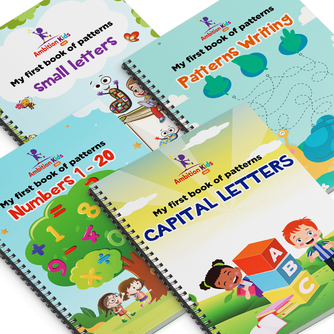 • Pattern Writing Pack — Patterns Writing, Numbers 1–20, Capital Letters, Small Letters (4 books)